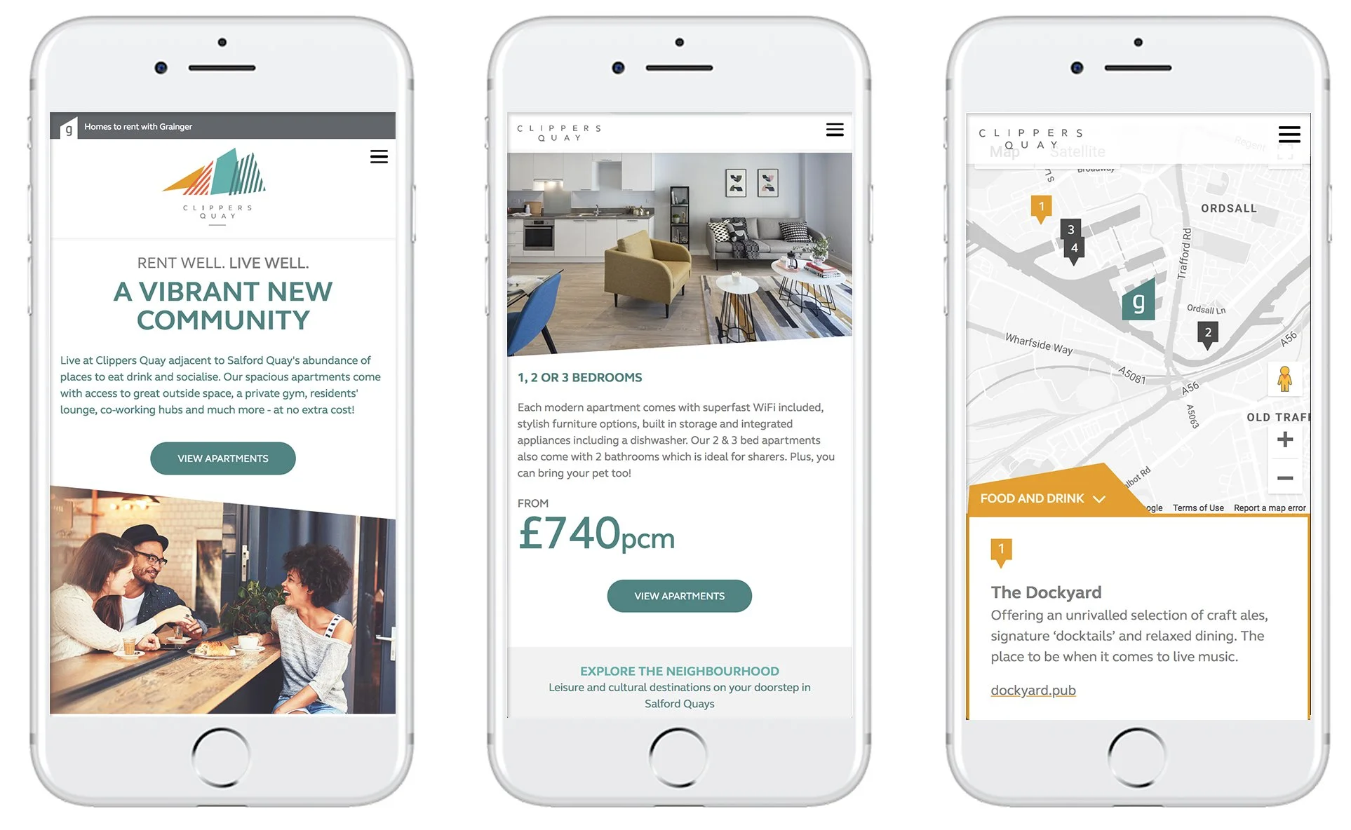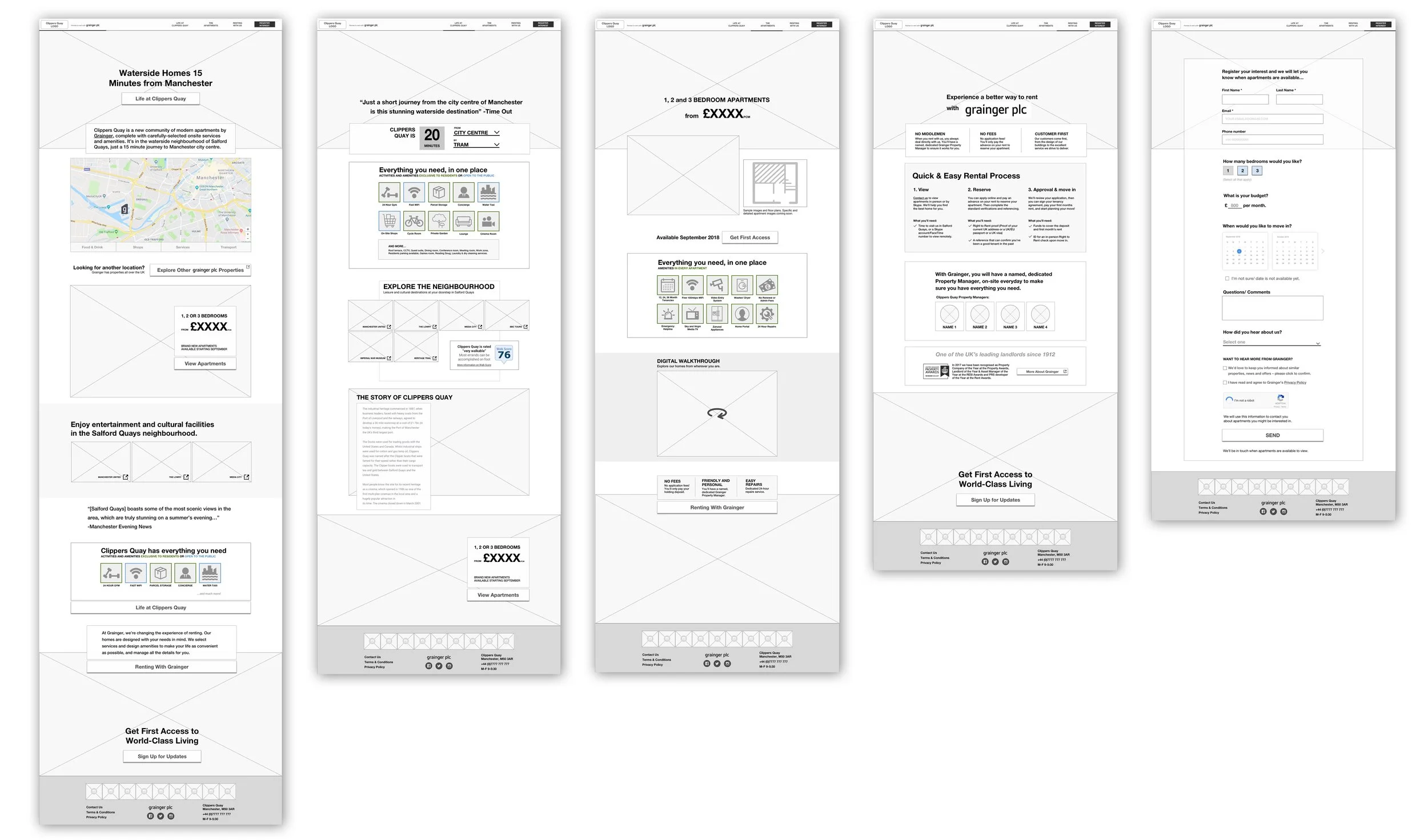 For a little over a year I worked for Webcredible, a design agency in London. Below is a case study for a 6-month project doing UX and UI. Clippers Quay is a brand new build-to-rent property near Manchester owned by Grainger plc (a leading property management company in the UK). I worked on-site with the client to design a new marketing site for the building complex.