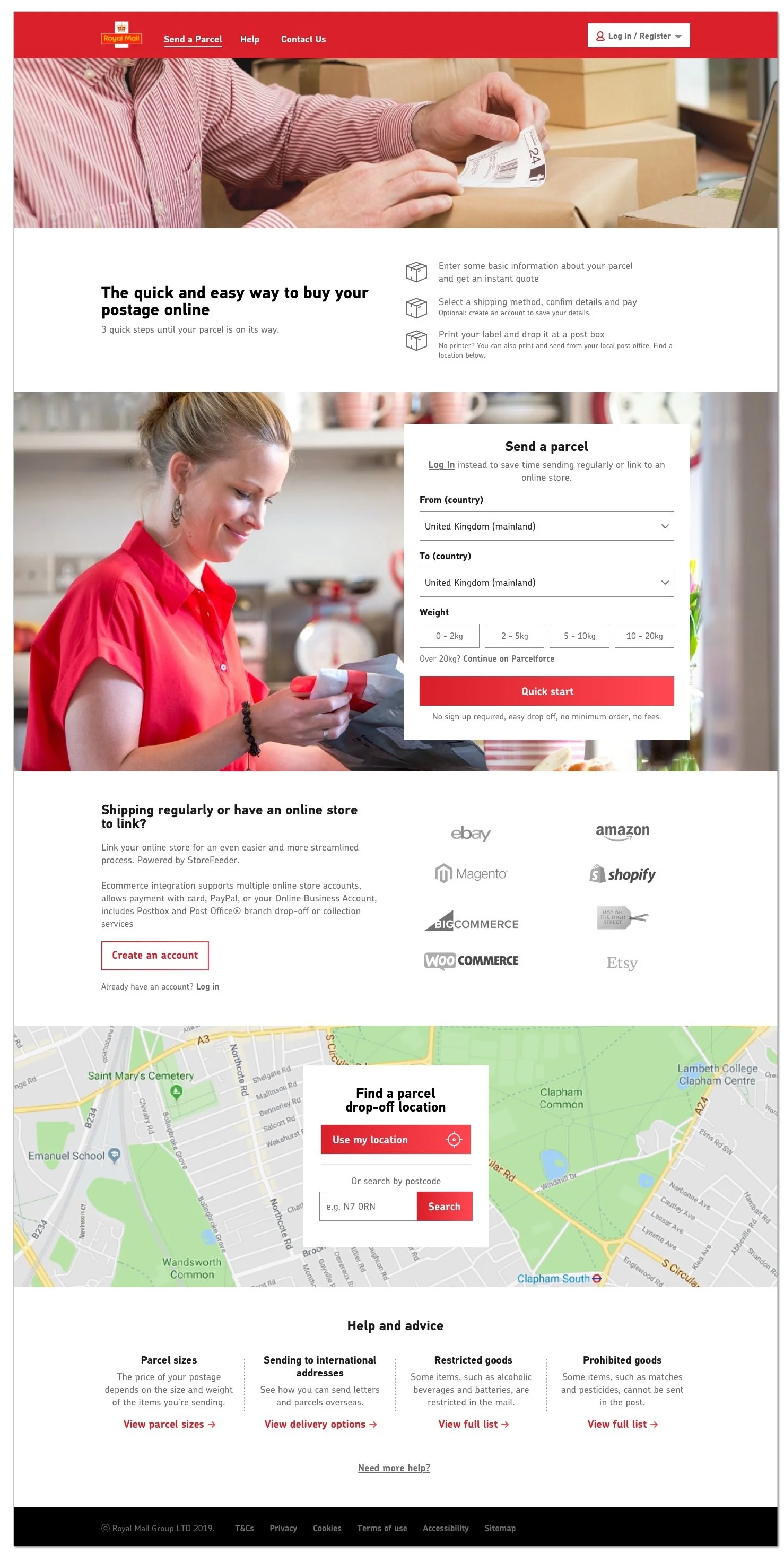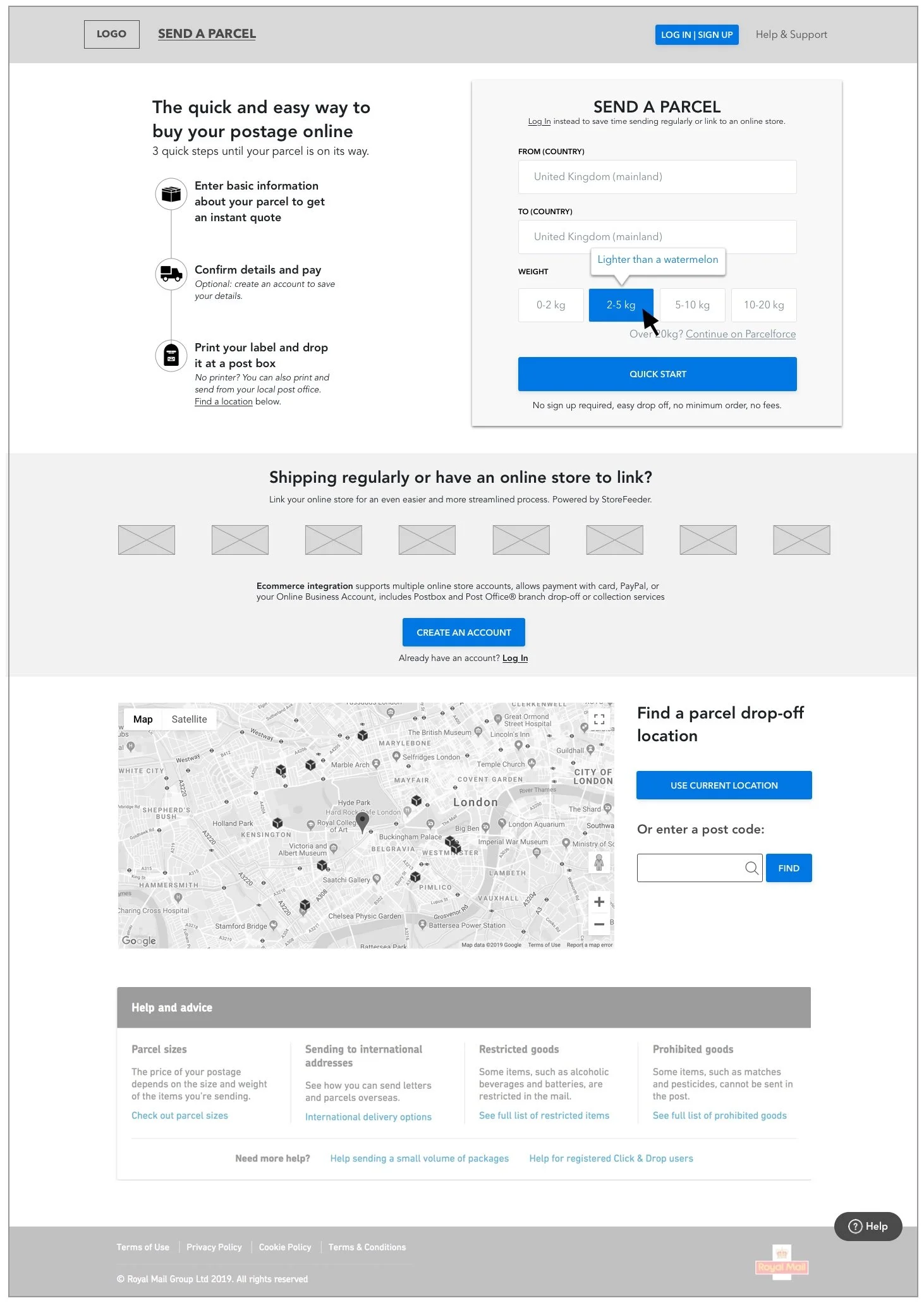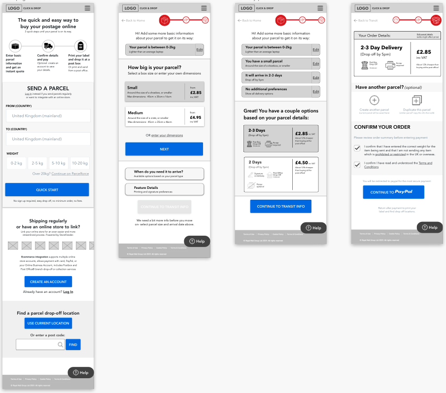 UX research and design for a new Click & Drop feature for Royal Mail, designed on contract at Mirum Agency in London.